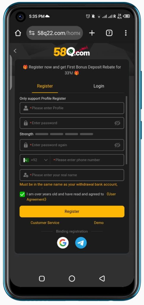 How to Register/Signup and Login in 58Q APK